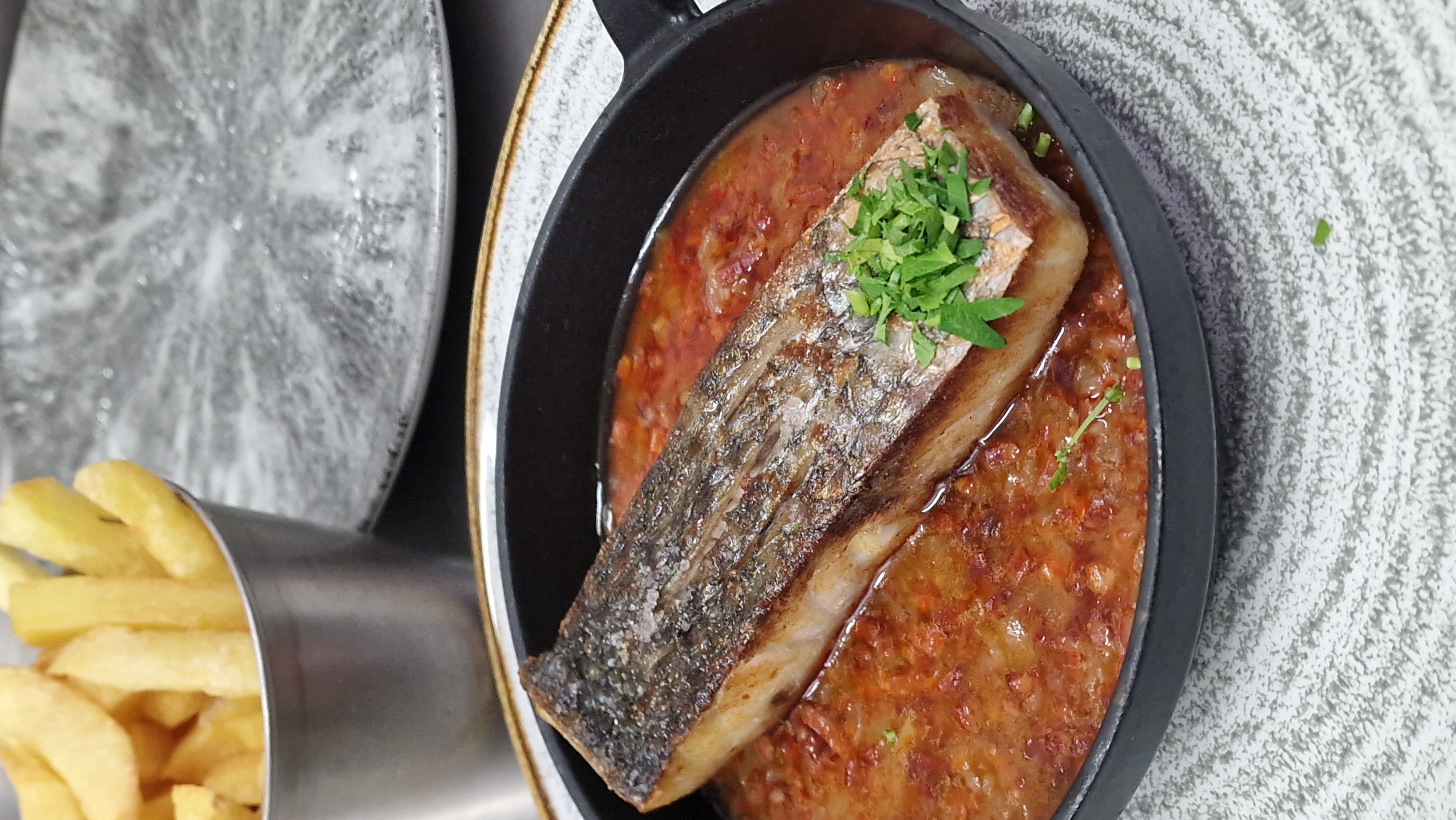 poisson du jour, condiment chorizo iberique