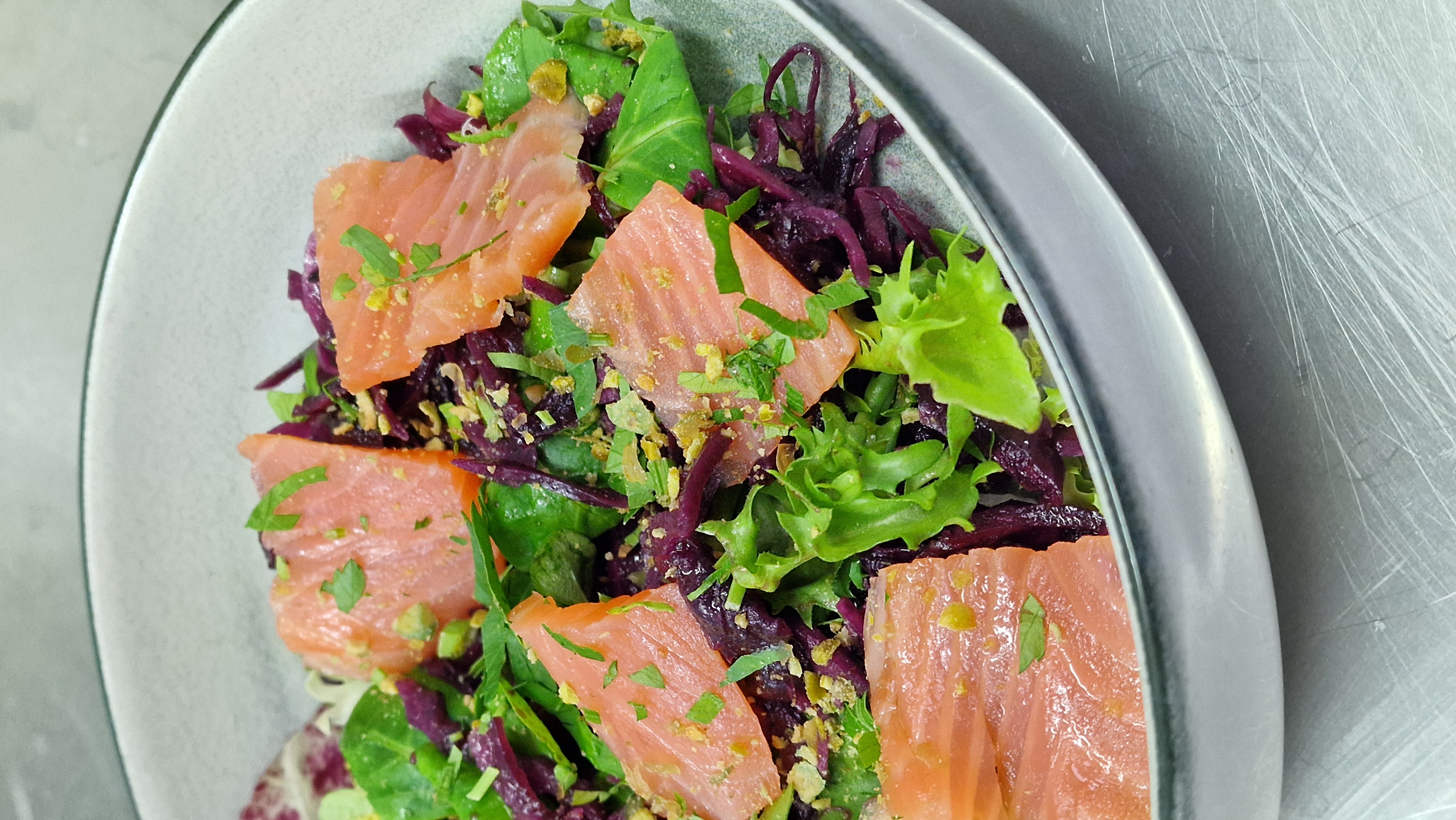 salade de chou rouge acidulé et saumon fumé